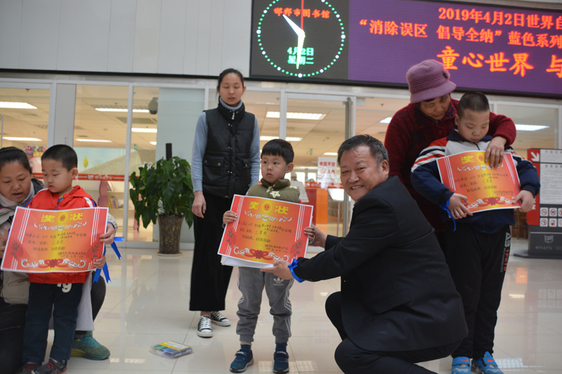2019年4月2日是第十二個世界自閉癥日,在邯鄲市圖書館內(nèi)舉行了“童心世界、與你對畫”自閉癥兒童公益畫展,讓社會上更多的人能了解、接納、包容、幫助這些自閉癥的孩子及其家庭,給他們以及他們的家庭一個有愛、有溫暖的“大家庭”。