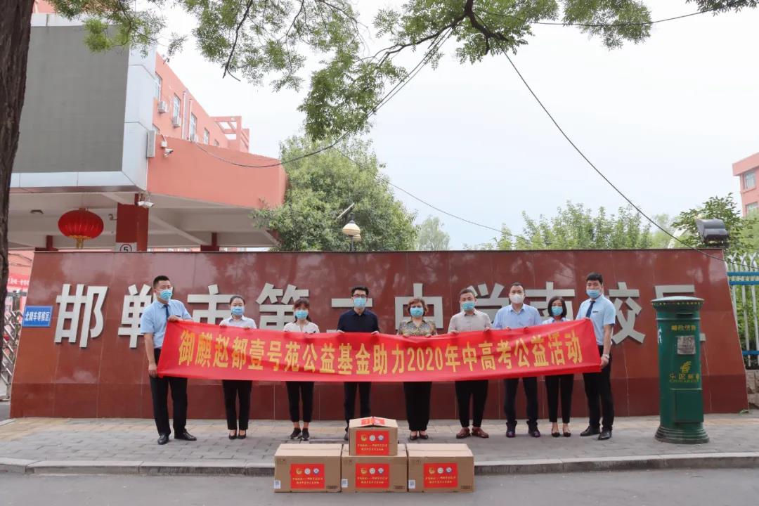 高考來臨之際,夢想起航——邯鄲市2020年助力中高考公益活動火熱進行中,御麒?趙都壹號苑公益基金為邯鄲市二中、三中、四中等6個校區,捐贈考試文具套裝6277套和一次性醫用口罩18831只,總價值13萬元,助力高三學子考場穩定發揮,金榜題名。